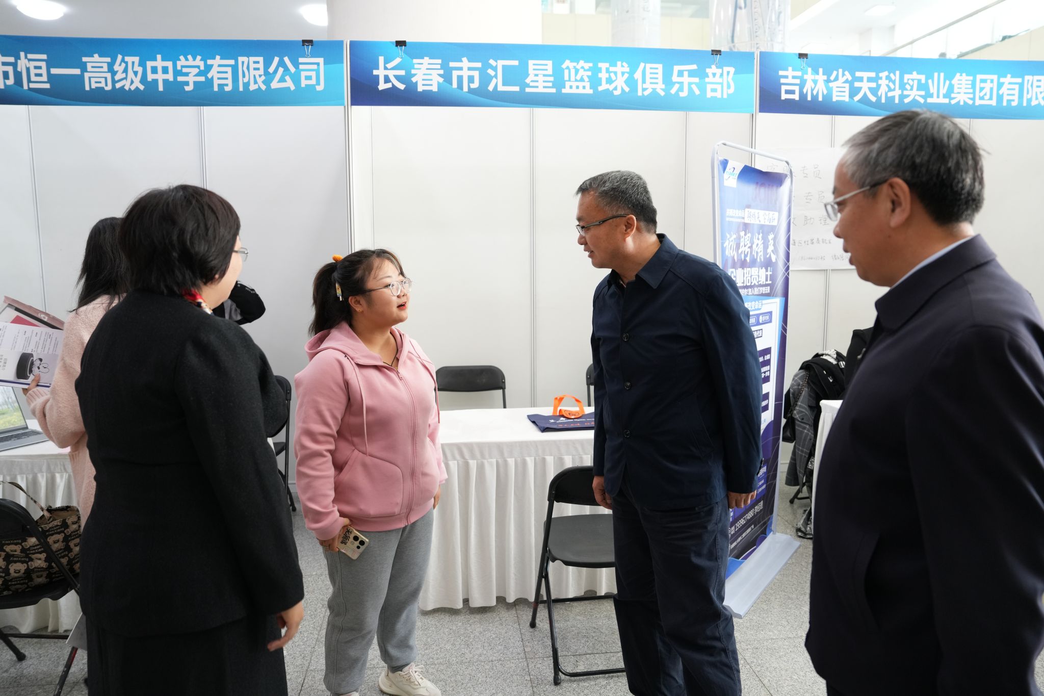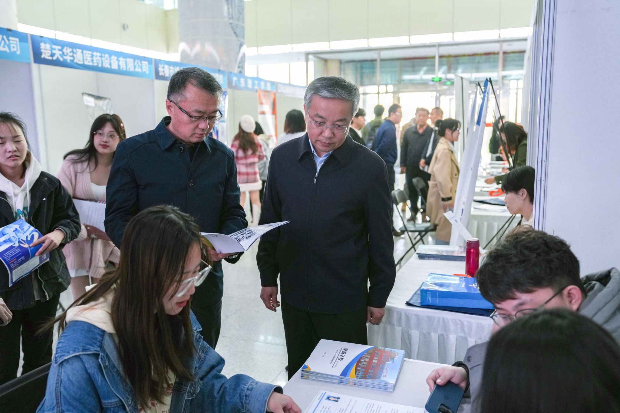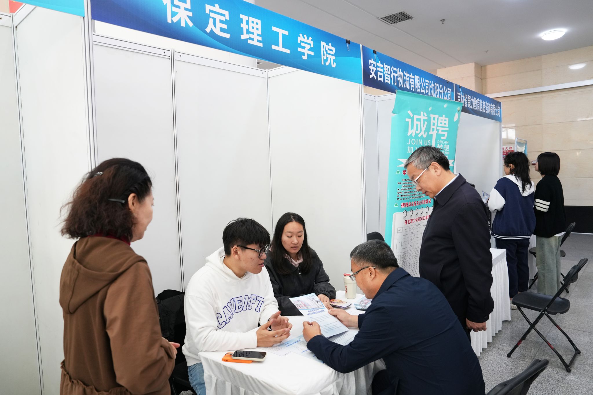 10月13日上午,校长王延明、党委副书记刘国宁深入学校“两类四专”招聘服务季(第七季)秋季双选会(第一场),与师生和招聘单位亲切交流,现场指导毕业生就业工作。