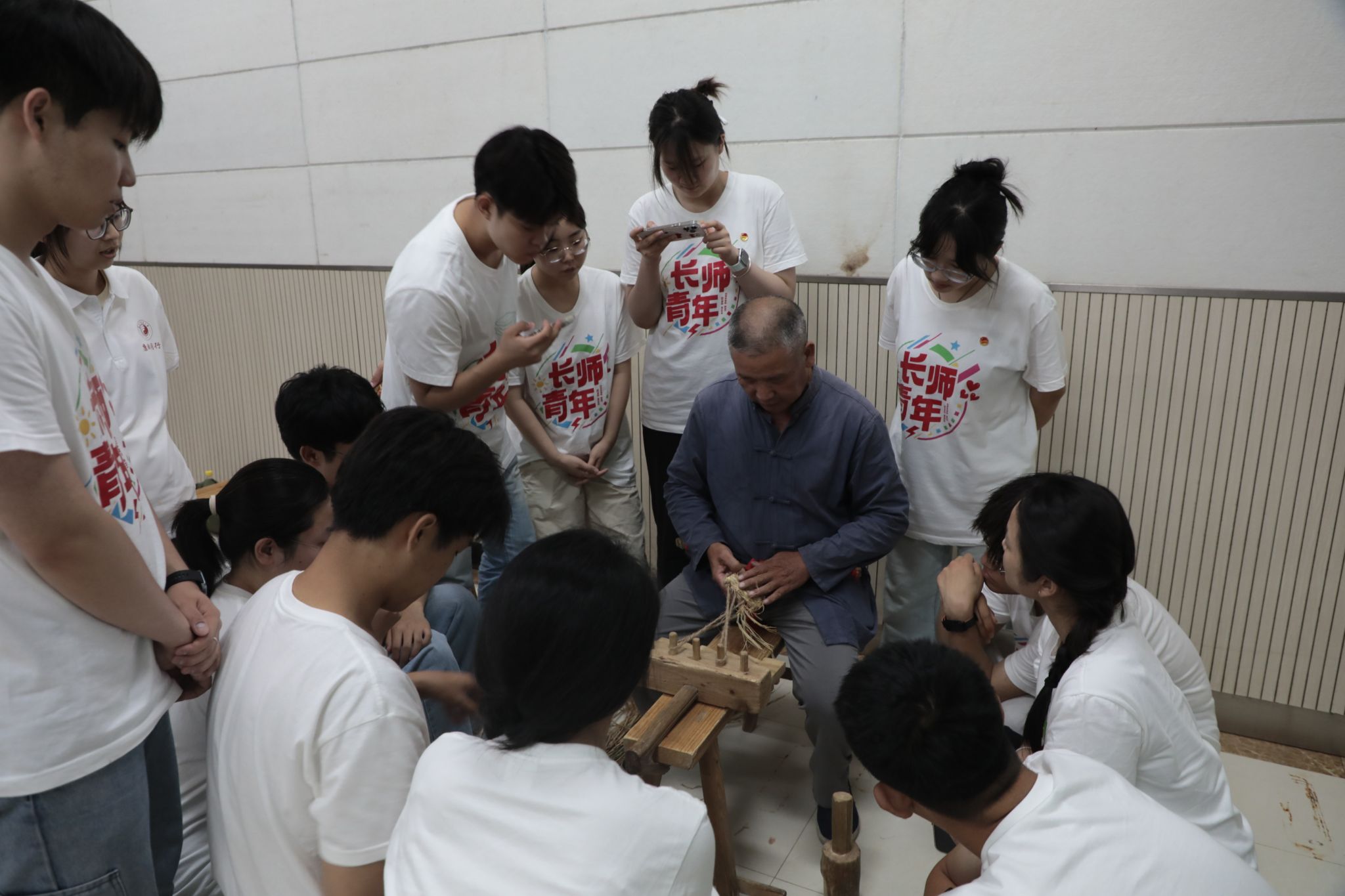 在“编草鞋”体验活动中,粗糙的草绳于指尖缠绕。队员们通过亲身体验草鞋编织的特殊技艺,深切体味“脚穿草鞋”跋山涉水的艰辛历程。“每一根草绳都承载着与革命传统的对话。”一名队员感慨的说到。