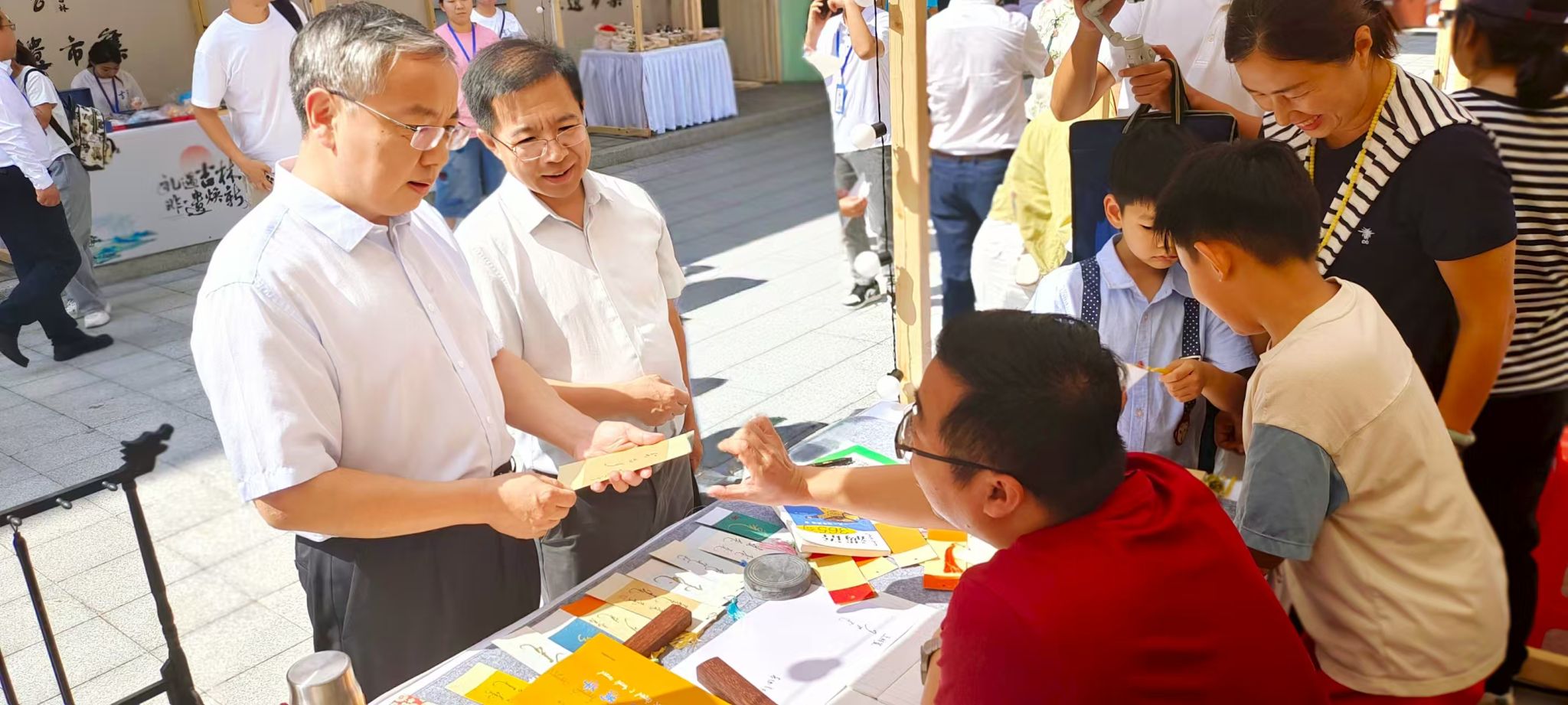在市集现场,刘国宁详细了解项目展示情况,对团队的非遗保护与推广工作给予肯定,鼓励大家持续做好满语文非遗的研究、保护与传播,让满语文非遗项目在新时代焕发新活力。